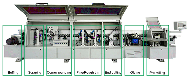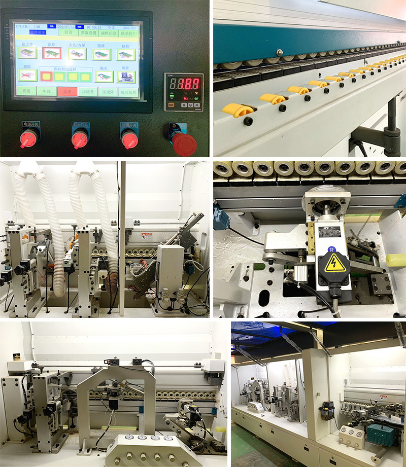 Tell que la plaqueuse de chants automatique a 8 fonctions principales, principalement utilisées pour le placage de chants de bureaux, d'armoires, d'armoires et de meubles linéaires. Application de colle automatique et précise, polissage monobloc double face. La colle est appliquée uniformément et le transport est stable.